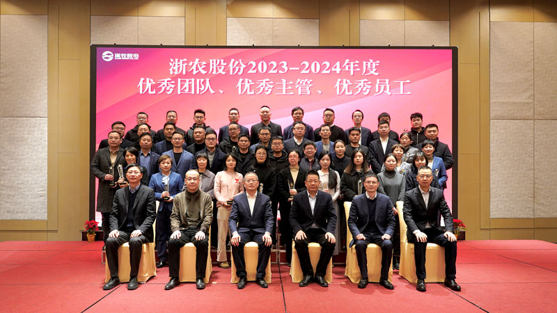 1月16日,浙農股份2025年經濟工作會議暨總結表彰會在杭召開,總結回顧2024年度工作,分析研判當前經濟形勢,謀劃部署新一年度重點工作任務。省供銷社黨委委員、理事會副主任董益彪出席會議并頒獎。興合集團黨委書記、董事長趙有國,浙農控股黨委書記、董事長李文華,浙農控股黨委副書記、總經理曹勇奇,興合集團有關職能部門負責人等出席會議。浙農股份黨委書記、董事長葉偉勇,浙農股份黨委副書記、總經理曾躍芳等經營班子成員及獲獎員工、代表參加會議。
