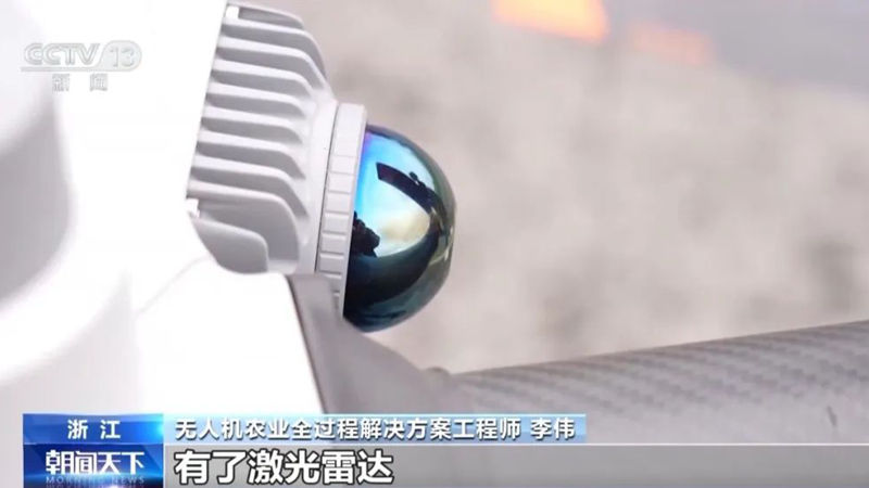 無人機農(nóng)業(yè)全過程解決方案工程師 李偉:這個就是我們新的激光雷達(dá),它讓整個飛機變得更加聰明、更加智慧、更加智能。我們田間的障礙物很多很復(fù)雜的,有了激光雷達(dá),它對0.5毫米的障礙物都可以檢測到,就像一個“二郎神”的眼睛一樣,看得更遠(yuǎn),看得更清。
