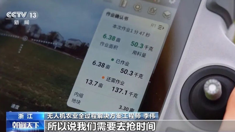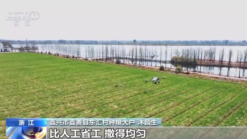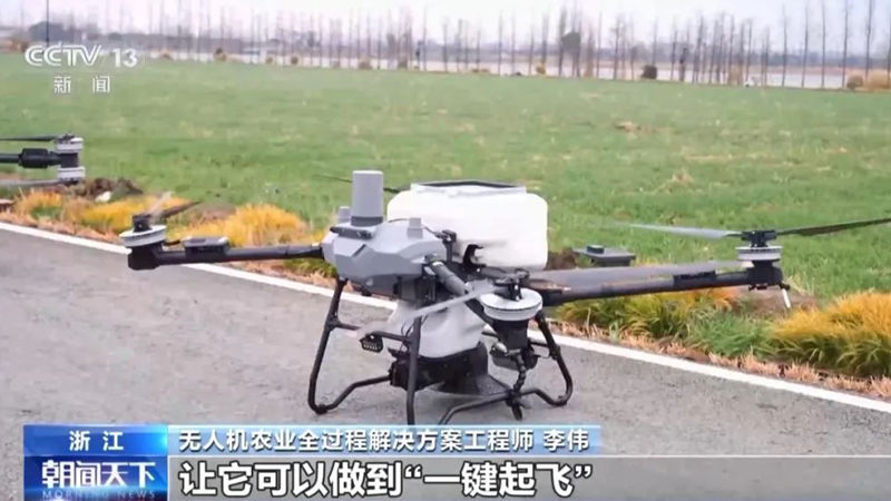 總臺央視記者 蔣樹林:在浙北大糧倉——浙江省嘉興市的嘉善縣,這臺無人機是今年剛剛新出的最新的型號。