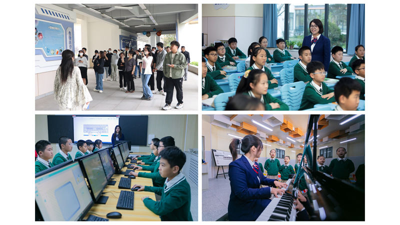參觀團一行首先觀摩了學(xué)生作品展區(qū)。繪畫、手工藝品、環(huán)保裝置等創(chuàng)意作品琳瑯滿目,充分展現(xiàn)了學(xué)生們的藝術(shù)才華和創(chuàng)新能力。在教學(xué)區(qū),雙語互動課堂和智慧教學(xué)場景吸引了參觀者的目光。校方介紹,學(xué)校通過多元化社團活動和個性化課程設(shè)置,全面促進學(xué)生綜合素質(zhì)發(fā)展。