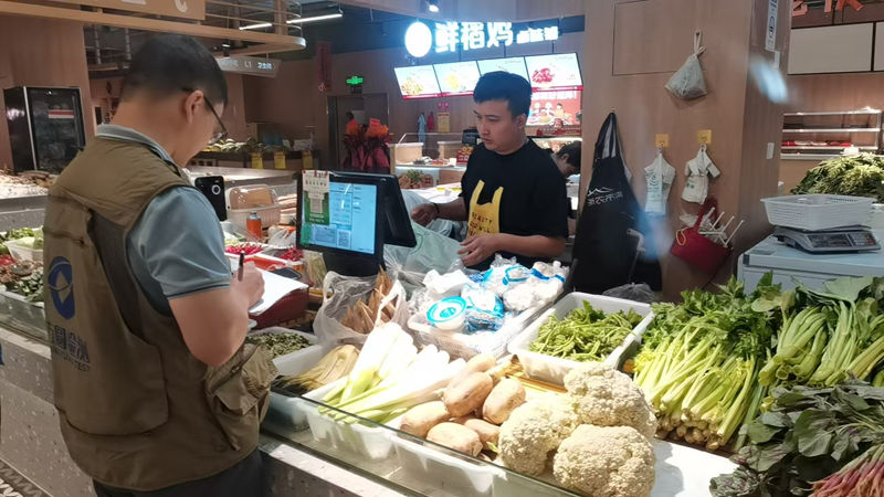 7月25日,由安吉縣市場監督管理局主辦、昌碩街道應急消防管理站承辦的“你點我檢齊參與,食安共富惠萬家”百姓點檢活動在安市集天山塢農貿市場舉行。
