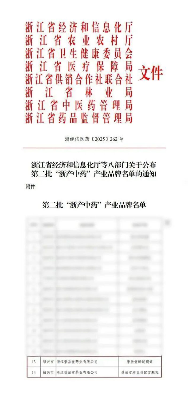 近日,浙江省經(jīng)濟(jì)和信息化廳等八部門(mén)聯(lián)合公布第二批“浙產(chǎn)中藥”產(chǎn)品品牌名單,浙農(nóng)中藥下屬景岳堂藥業(yè)生產(chǎn)的醋延胡索、浙貝母配方顆粒成功入選。
